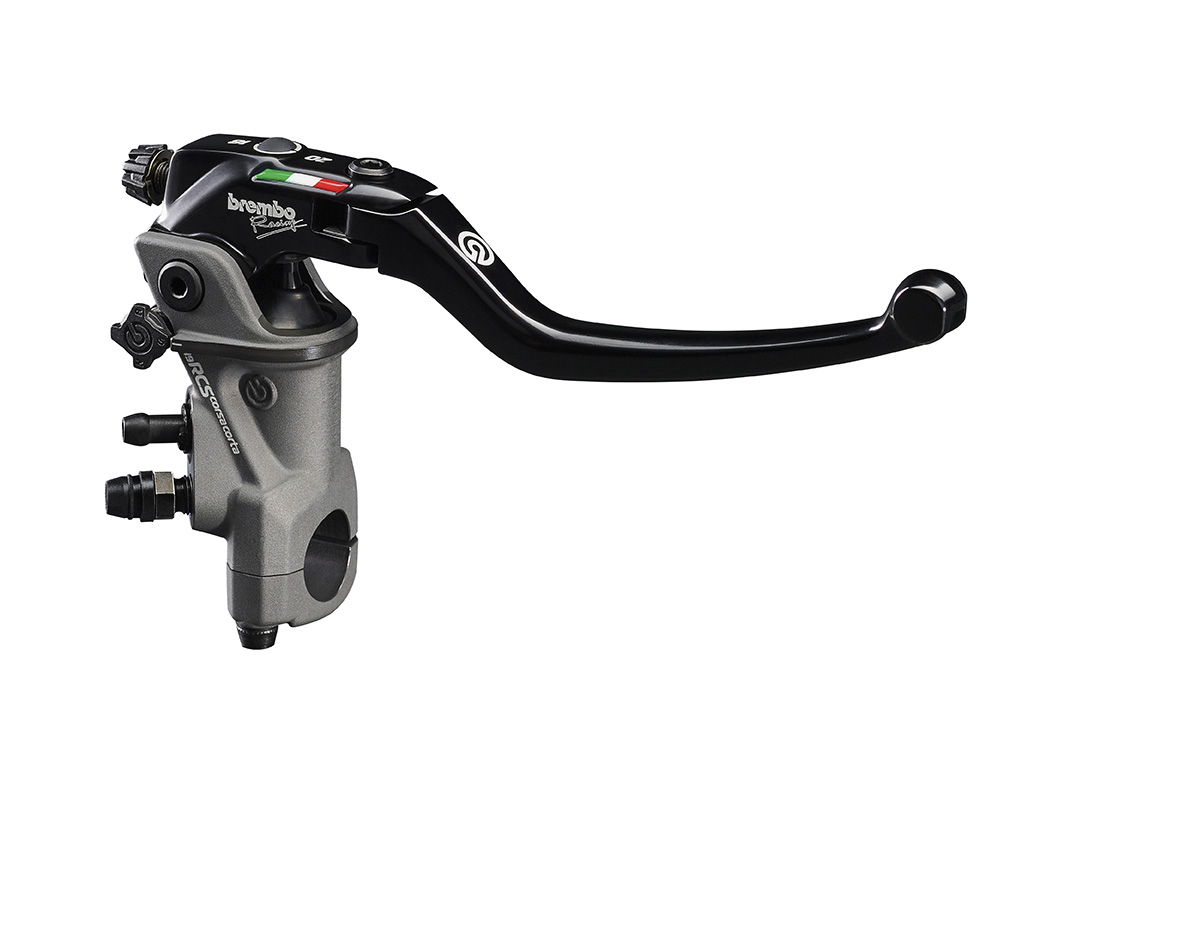 he Brembo radial master cylinder with 6 different brake modulation options. The 19RCS CORSA CORTA is characterized by the possibility it provides the rider to adapt the braking bite point to the desired riding feeling, in addition to the RCS (Ratio Click System), introduced 10 years ago on the Brembo 19RCS radial brake master cylinder, which allows the center distance of the master cylinder to be adjusted to 18 or 20.