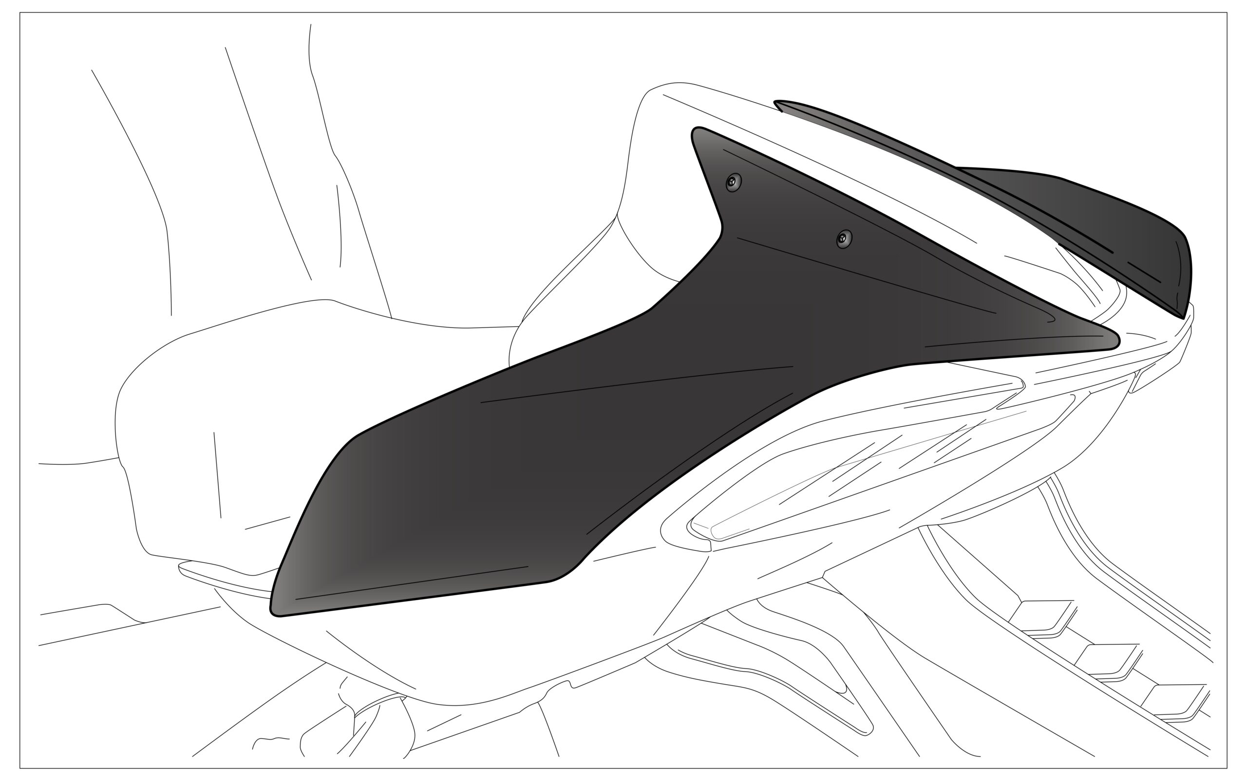 Its assembly is very simple since the Puig tail cover uses the same anchoring system as the passenger seat it replaces. All you have to do is remove the passenger seat and put the Puig tabs in its place.
